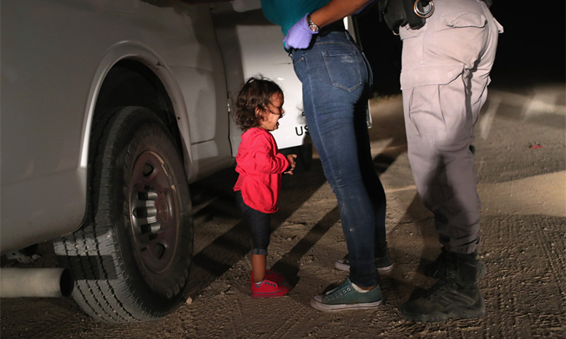 今年4月到5月,美国执法部门将至少1995名儿童强行从他们的父母身边分离。上周,普利策得主摩尔(John Moore)抓拍到的一张2岁红色上衣小女孩看到妈妈被巡逻警搜查时嚎啕大哭的照片,引起了美国社会的强烈反响。摩尔表示,作为一个父亲,这张照片照的实在很难受。