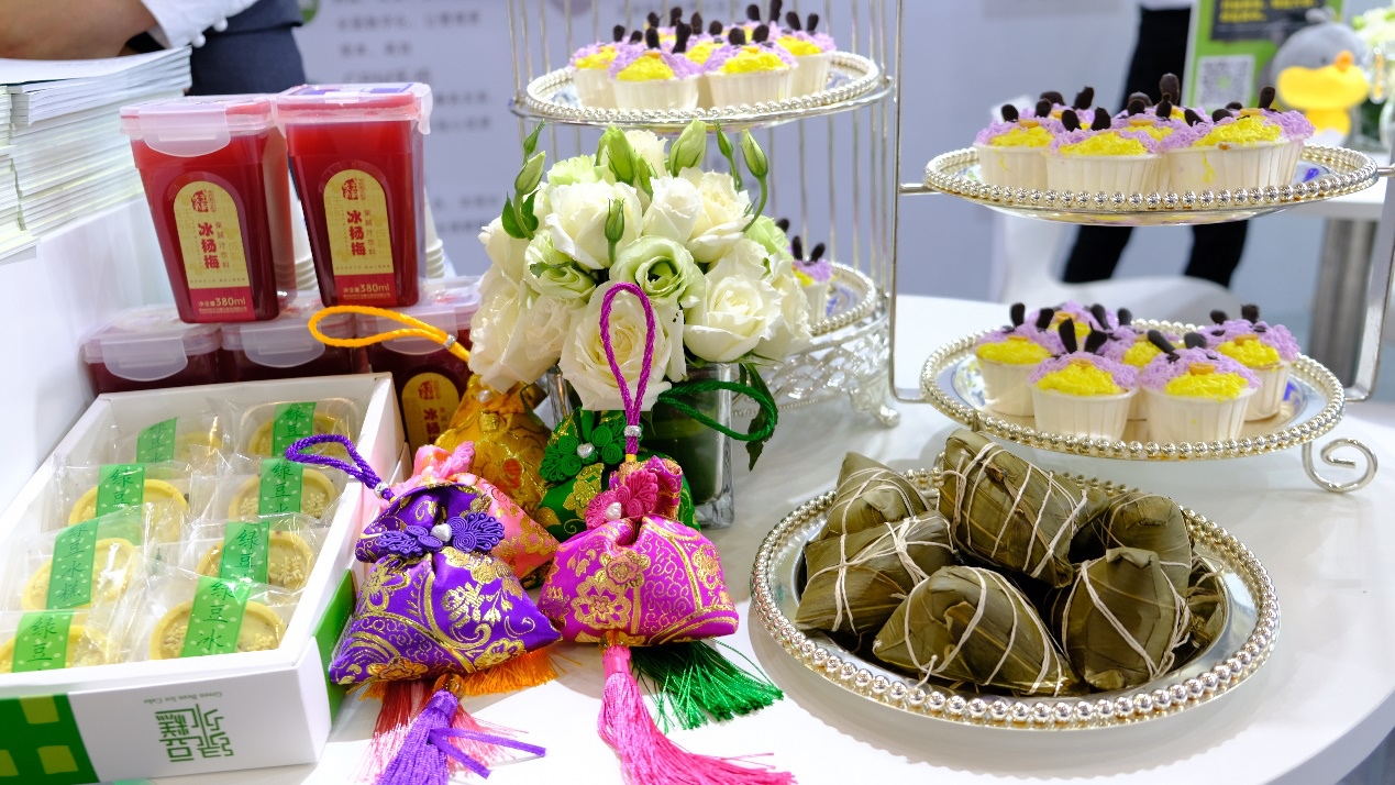 为庆祝端午节的到来,万科物业给观展人员准备了定制版小知知蛋糕、粽子和香包,展会三天内在咪咕善跑APP打卡6.18KM的用户还可到展位内领取精美礼品一份。此外还特地邀请兴元嘉园业主舞蹈队为会场工作人员跳舞助力。