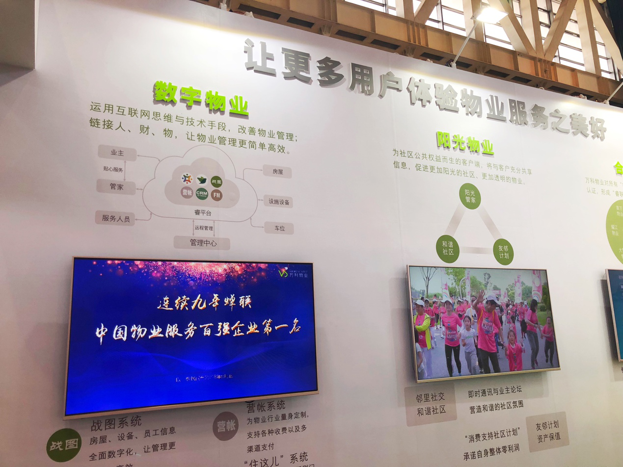 此次物博会万科物业以“让物业管理²更简单”为主题,重点展示了万科物业一体化运营成果及智能化硬件及软件成果。