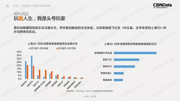 CBNData《报告》显示,上海23-28岁消费者最喜欢智能飞行产品和VR头盔。