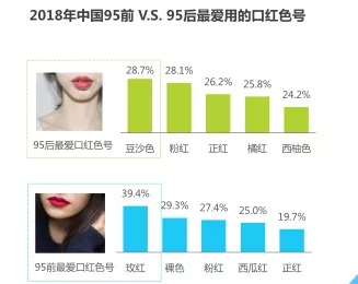 他们出门一定会随身携带的是BB霜、口红和眉笔。来看看95前和95后的爱用口红色对比: