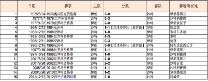 他们对抗的结果如何?对自1975年以来双方的15次对阵结果进行梳理后可见,双方势均力敌,基本平局。