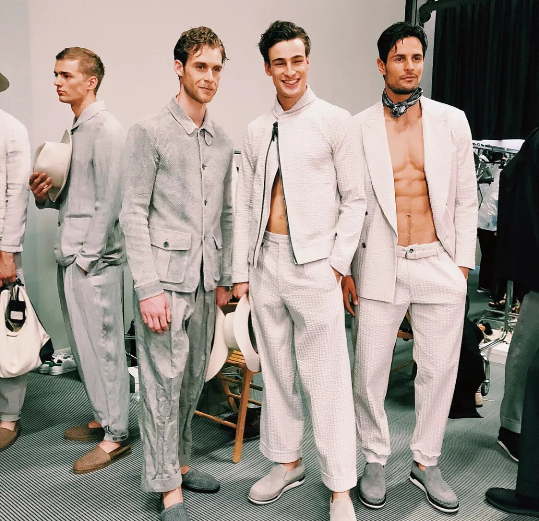 Giorgio Armani虽然经典,但是并不“老成”。今年的双排扣西装、宽松剪裁更有“亲和力”。上衣肩膀尺寸更宽松舒适,卷裤腿休闲裤搭配渔夫鞋,让你看上去天生就那么有气质。