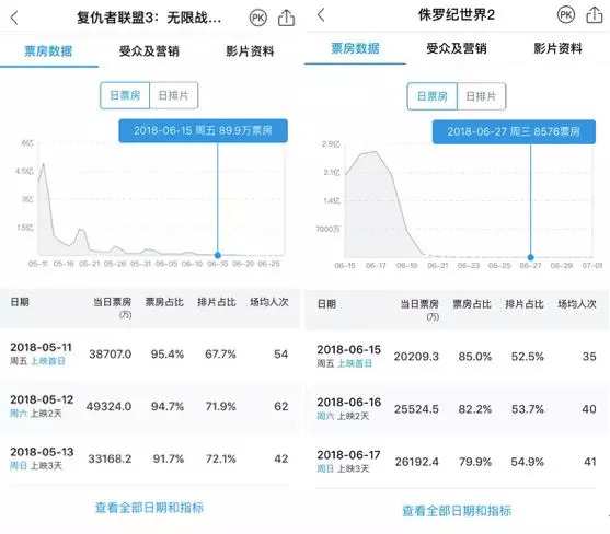 再有,开幕战、C罗的葡萄牙、梅西的阿根廷,三场比赛都集中在这三天,想不影响《侏罗纪世界2》都难。世界杯后期决赛阶段的比赛,大多在22:00和02:00点开踢,这样看来后面《超人总动员2》和《动物世界》面对的压力或许会小一点。