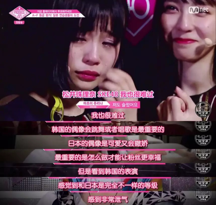 在韩国的偶像体系之下,日本偶像团体显得格格不入,可爱和软萌这个残酷的对擂台上似乎显得毫无用处。对于代表国家出战的选手们来说,这是关乎于荣誉感的一战,以至于回到后台后,小姐姐们因为尊严受挫而流下眼泪。