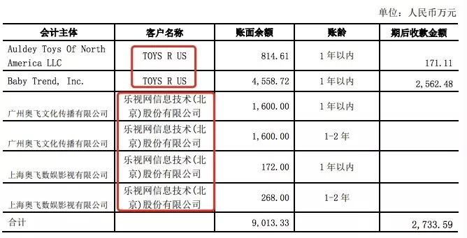其四,合作伙伴不靠谱。欠奥飞约5373.33万元应收帐款的玩具反斗城,已经申请了破产;欠奥飞3640万元的乐视,在它楼下拉横幅讨债的人也早已直面一分钱都收不回的惨淡现实。