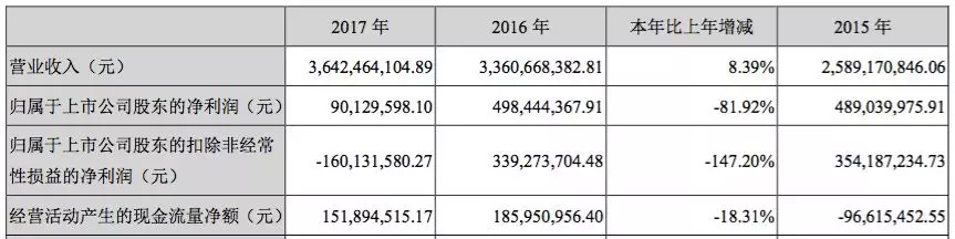 报告显示,奥飞娱乐2017年实现营业总收入364,246.41万元,同比增长8.39%;净利润仅0.9亿,同比减少81.92%。但归属于上市公司股东的扣除非经常性损益为亏损1.6亿元,同比2016年的盈利3.39亿减少了147.2%。