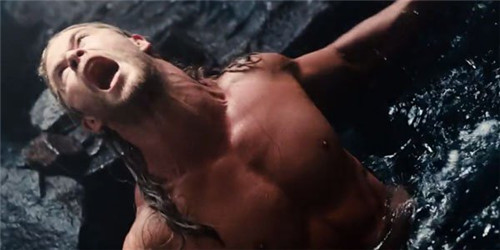 雷神浸在水里并且在叫喊,这看上去并不像是在地球上: