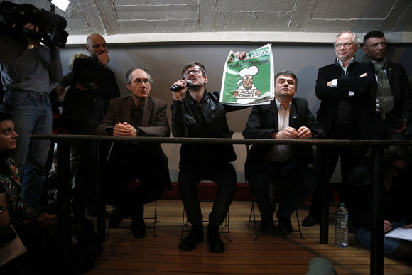 这个封面方案是在周一晚就被编辑部确定的。法国第一大报《解放报》把办公室借给了《查理周刊》的员工使用。