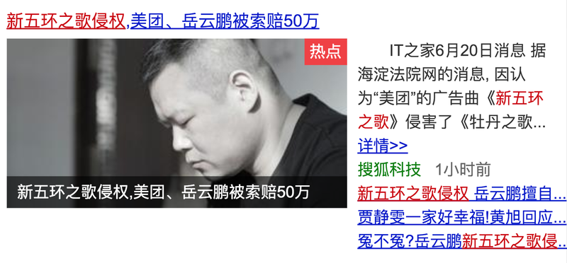 有意思的是,今日还有一个与版权侵权有关的热门新闻——新五环之歌被指侵权,该案例涉及到音乐商用的授权。