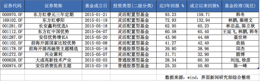 距离2015年的那场牛市已经过去整整三年。界面新闻回顾2015年新发基金表现发现,许多曾被市场热捧的新发基金折戟,也有一些产品突出重围。