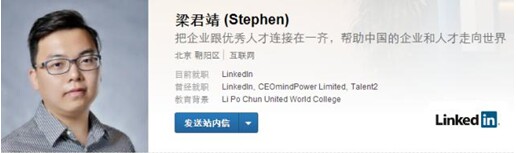 作者梁君靖是LinkedIn领英企业客户销售经理,香港人,今年10月刚从香港调到北京。