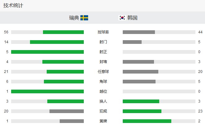 虽然整场来看瑞典队优势不小,让韩国队连脚打正的射门都没有: