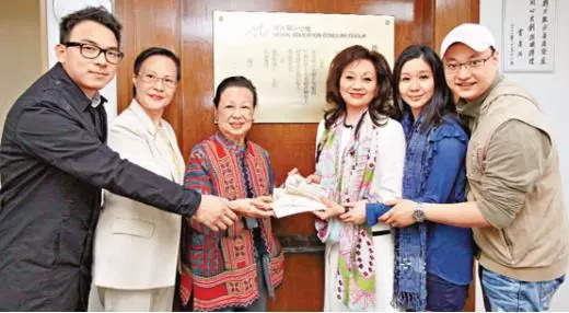 戴德丰太太胡美蓉(右3)同二儿媳(右2)向董建华夫人赵洪娉(中)群力资源中心捐赠孙子戴承亨百日宴贺礼,服务慈善公益
