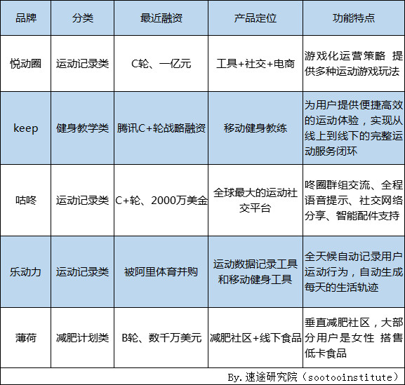 悦动圈是目前最热的健身APP,针对跑步、骑行、步行等运动基于GPS工具进行记步,其中最具特色的功能是采用红包奖励机制激励用户坚持锻炼并多次使用APP。悦动圈的商业化模式是垂直电商+线上赛事,线上赛事与红包奖励机制息息相关,在线商城以体育用品为主要商品,其他生活中需求强的商品也会出现在商城中。