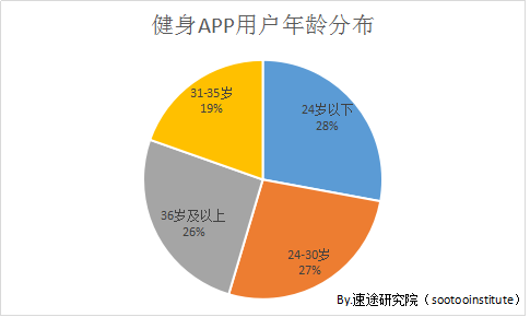 在健身APP用户年龄的分布上,24岁以下的用户年龄段占比最多,达到了28%;24岁至30岁的用户占比27%,略少于24岁以下年龄段,健身APP的用户已经呈现年轻化趋势。在性别方面,男性用户略多于女性用户,女性用户主要集中在减肥类APP和健身计划类APP,男性用户则主要集中在运动记录类APP。