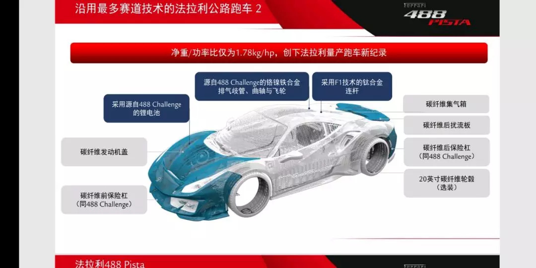 360时代,法拉利首度以Challenge赛车为基础推出360 Challenge Stradale,简单说就是Challenge可合法上路的街道版,动力更强,重量更轻,调教更加竞技化,包括后来我们熟悉的430 Scuderia与458 Speciale,眼前的488 PISTA就是488的竞技版,当然你也可以视为488 Challenge的街道版。