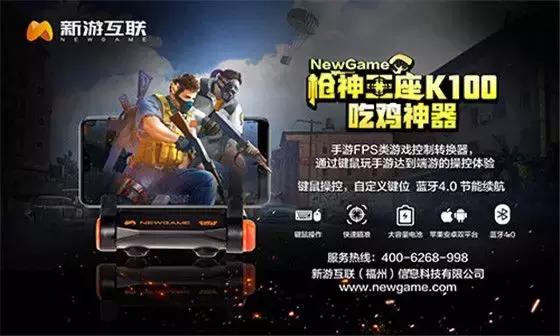 2018年6月13日,在第四届亚洲电子消费展(CES Asia 2018)的开幕式上,新游互联展出了针对移动端设备FPS类游戏(“吃鸡”类手游)的智能外设“枪神王座K100”,其可以通过蓝牙与手机相连,实现手游键鼠操作体验。然而,类似的手游外设并非在近期才于智能硬件业崭露头角:另一品牌HandJoy在2017年便推出了HandJoy Kmax 枪神王座,同样瞄准了“手游升级端游”的需求痛点。