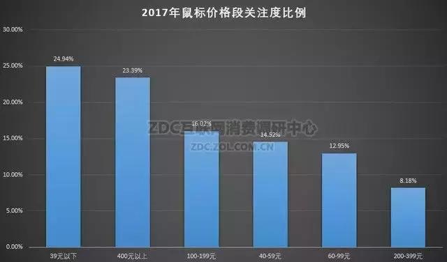 2017年鼠标价格段关注比例(ZDC.ZOL)