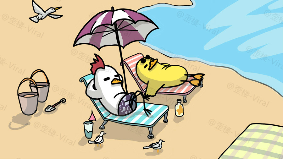 不看球的小鸡小鸭只好跑到没有电视的地方晒太阳。