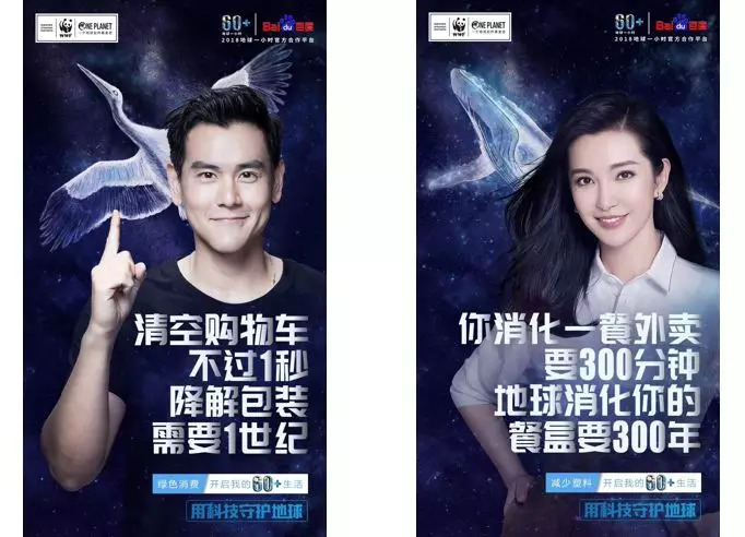 又比如在这组WWF与百度联合发起的“地球一小时(EarthHour)”节能活动宣传海报中,就利用“1秒”“1世纪”,“300分钟”“300年”等数据,突出人们日常生活中的小事给环境带来的巨大污染,提醒大家环保从身边的小事做起。