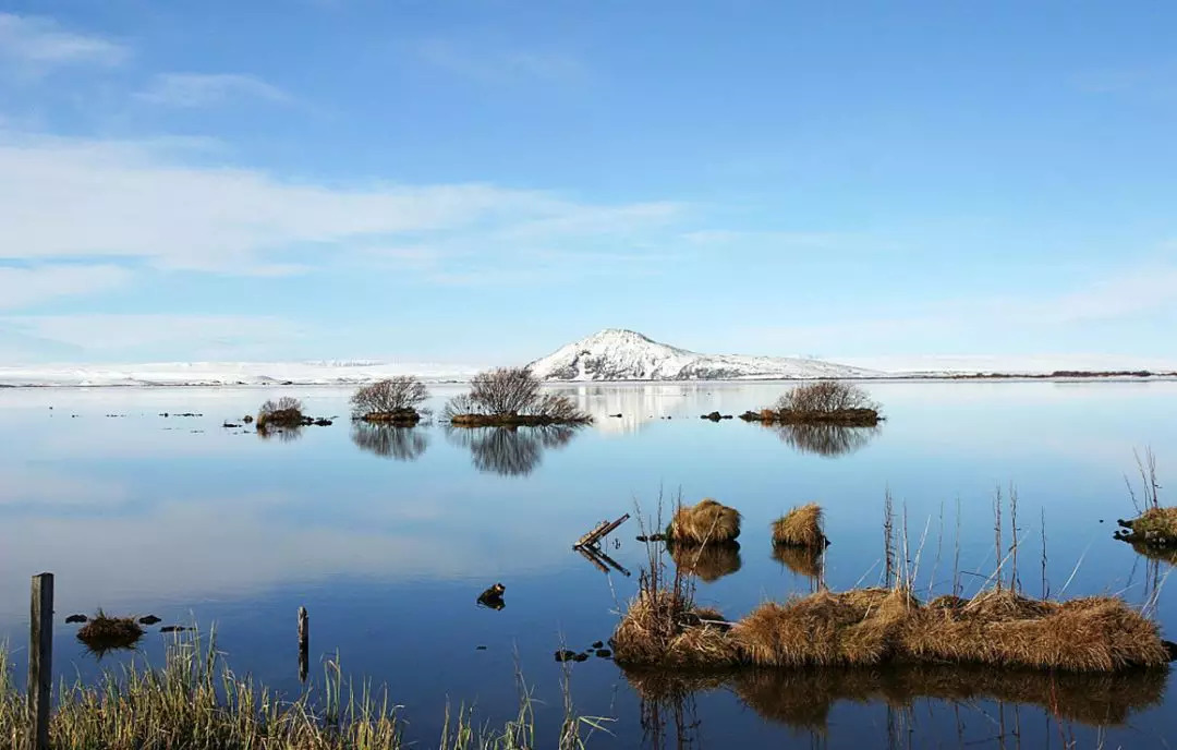 米湖位于冰岛北部,同时也处在活跃的火山区内,因此周边主要景观就是火山地貌。米湖区还有一大奇观——克拉芙拉热气田。这一热气田水温超过200摄氏度,被当地居民用来建造了冰岛第一座地热发电站。