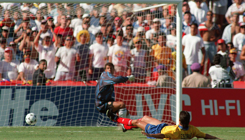 1994年7月5日,同样在麦德林,一个同样名叫埃斯科巴的男人被刺杀。他叫安德烈·埃斯科巴,当时的哥伦比亚国家足球队队长,也是带领哥伦比亚冲进当年美国世界杯的主力后卫,意甲豪门AC米兰此前已向他伸出橄榄枝。在安德烈打进一个匪夷所思的乌龙球后,哥伦比亚队小组垫底出线无望,而他本人则在世界杯还未结束之时,在自己的老家被枪杀。