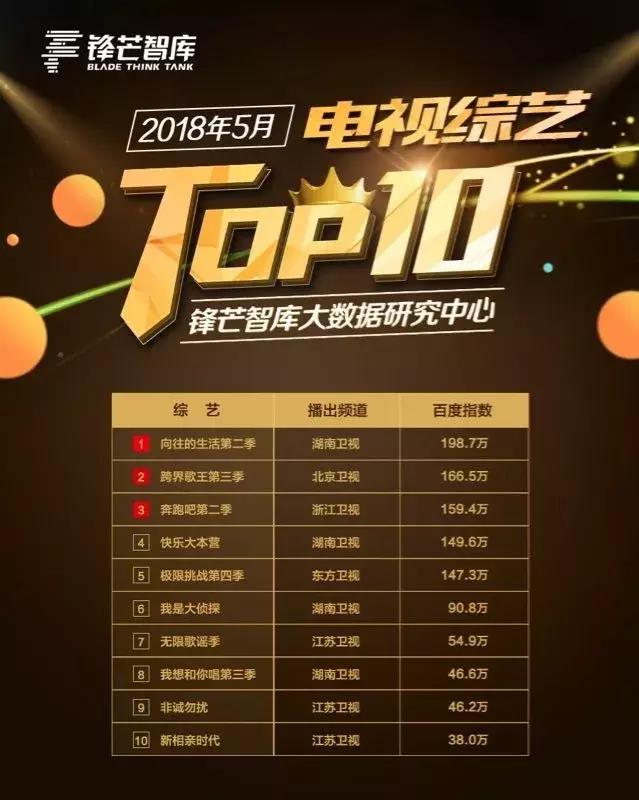 锋芒智库大数据研究中心2018年5月电视综艺TOP10百度指数