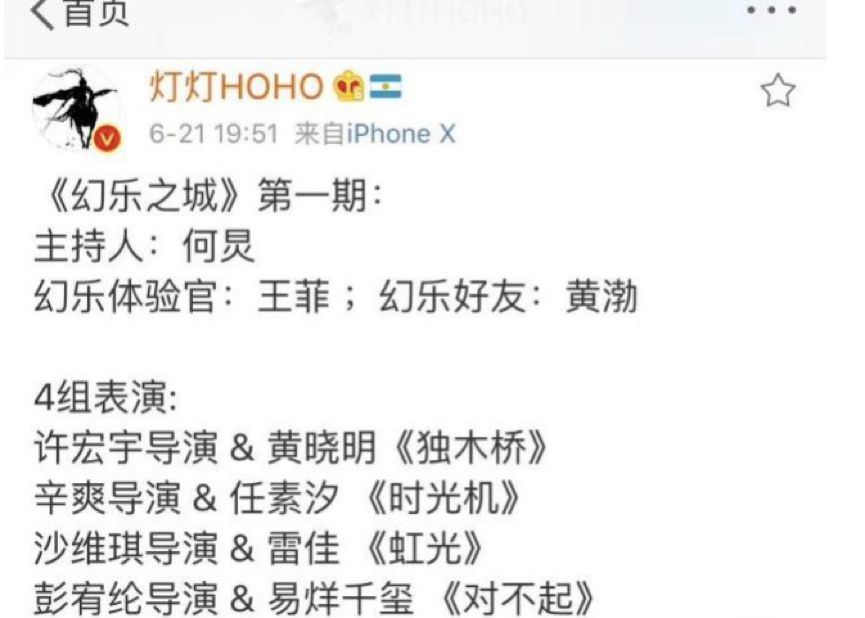 据了解,《幻乐之城》也已经开始录制,微博上也有大v曝除了首期的嘉宾阵容以及歌单。从爆料来看,除了王菲之外,这档节目似乎也是走的“跨界”路线,艺人和导演的合唱能玩出什么样的花样,也是留足了悬念。