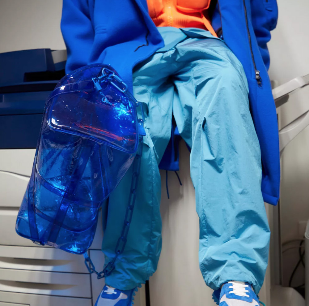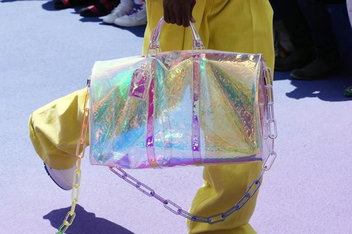 很多人关心的配饰方面有不少惊喜。这是Virgil的强项。当透明材质、多彩的塑料链条等属于他标志性的特色,结合LV的logo和monogram,经典手袋立刻变得很不一样。无论是半透明材质的Keepall旅行袋,还是炫彩视觉效果的Monogram,都非常有辨识度。