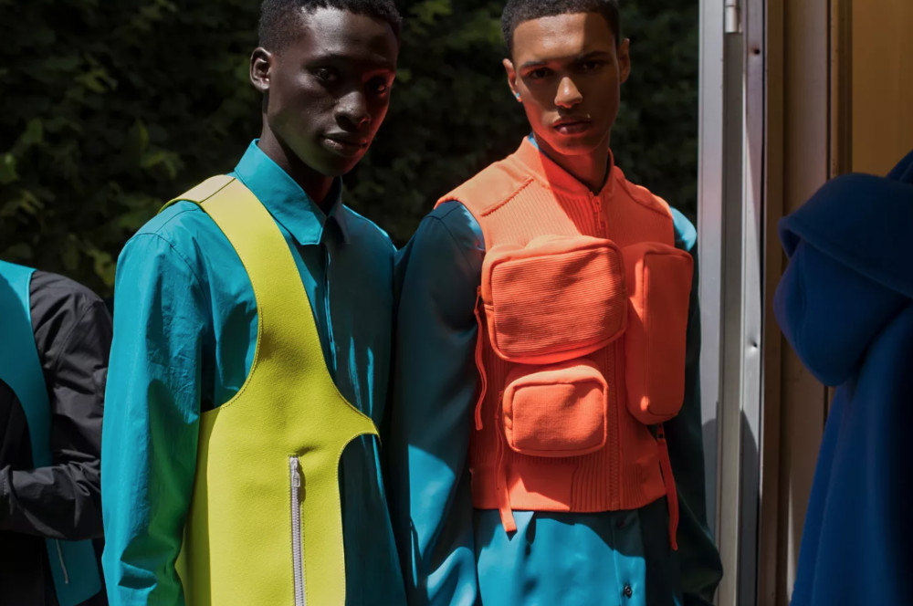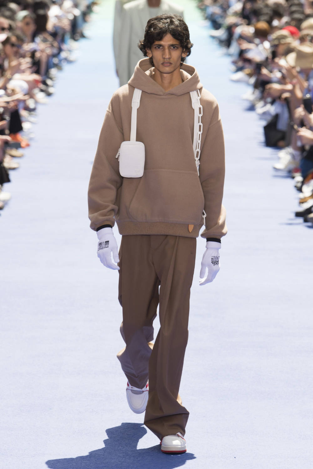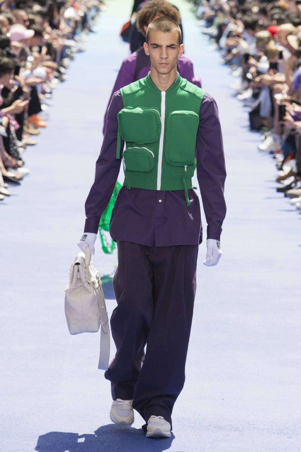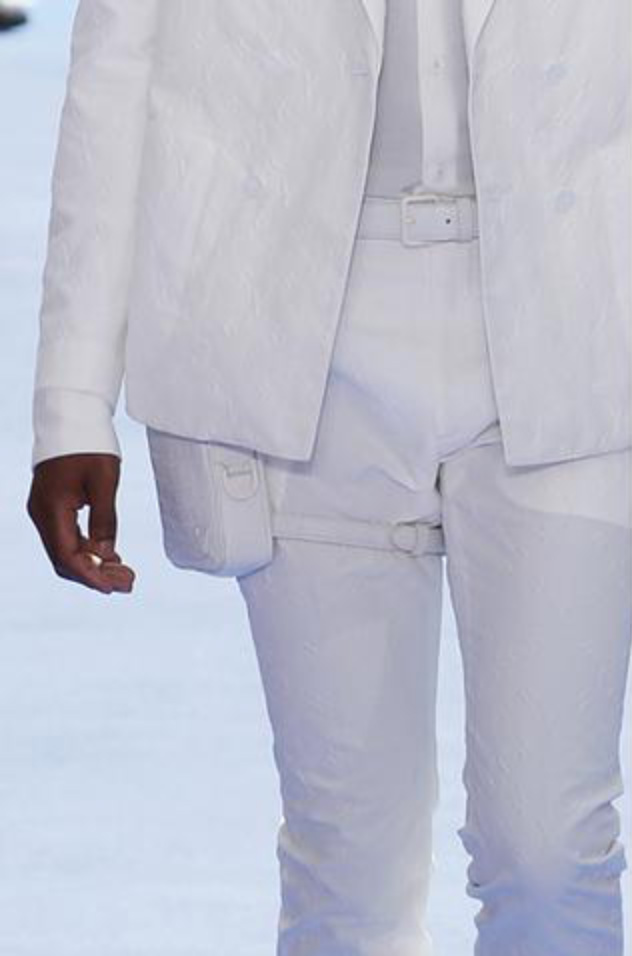 这次时装秀大多数造型都是纯色,个别几套用荧光色玩了小小的撞色。开秀17套造型全部都是Off-White(灰白色),而且都由黑人模特演绎,是Virgil作为奢侈品牌创意总监中少有的黑人,所选择的一种自我表达方式。他也希望借此系列更多的与年轻一代对话,就像他还请了多位饶舌歌手如Playboi Carti,Kid Cudi等来走秀,想展现的是“穿什么不重要,重要的是什么人在穿”的时尚态度。