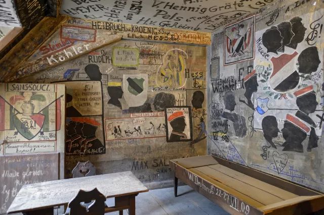 如今虽然学生监狱已被取消,但它成为供游客们看热闹的地方。当时的牢门已成为房间里的摆设品。这扇门画满了蹲过“监狱”的学生的画像和姓名。据说,当时每一个“坐牢“的学生都要以这种方式做记录。“监狱”的墙上至今还留有当时学生写的文字和诗句,天真有趣的语言让人忍俊不禁。