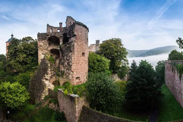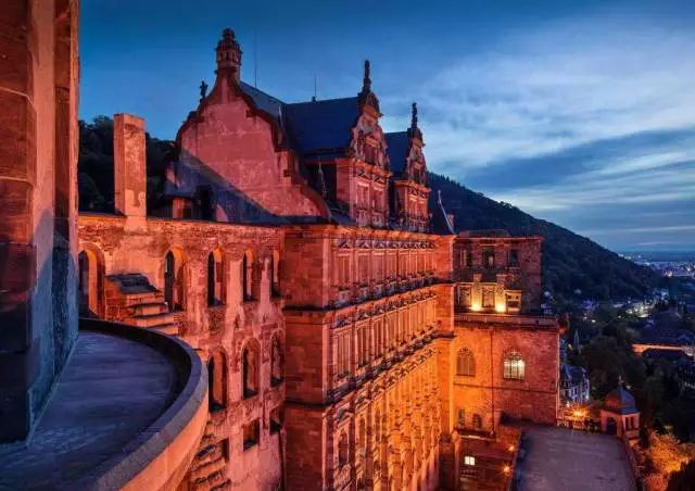 提到海德堡,就一定要说说这座小城的标志——海德堡城堡。马克·吐温曾这样评价海德堡城堡:残破而不失王者之气,如同暴风雨中的李尔王。整个建筑主要用红褐色的内卡河砂岩筑成,历时400年才完成。由于时间跨度太长,城堡形成了哥特式、巴洛特式和文艺复兴式三种风格的混搭。