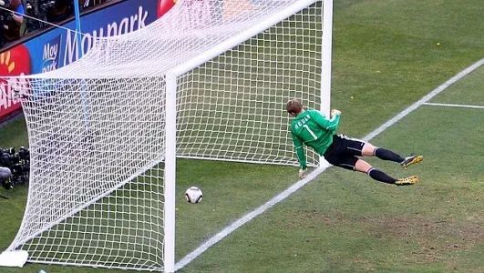 英德交锋史上,球门的门线扮演了非常重要的角色。英格兰队至今唯一一个世界杯就是1966年战胜德国获得的。这场决赛诞生了世界杯历史上最有争议的决赛进球。当时,英格兰前锋赫斯特的劲射打在球门门楣上再落地反弹出来,由于球速过快谁也没看清皮球反弹时是否越过了球门线,但裁判认为这个进球有效。最终,英格兰凭借着这个进球确立优势,进而战胜德国队。