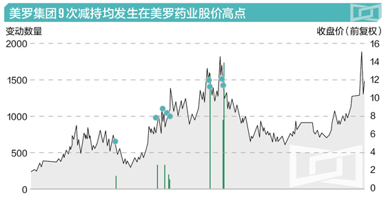 在9次减持中,最大一次减持发生在2011年4月20日。美罗集团减持数量为1750万股,当日股价收盘价为11.48元。之后,美罗药业股价持续走低,公司股价曾于2012年12月4日跌至4.71元。