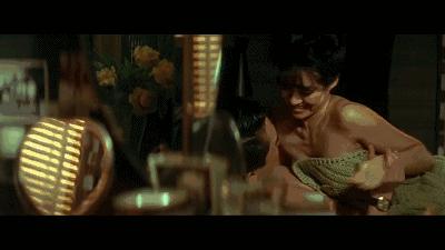 她在共和楼与叶问的那次交手,不如说是一次调情。高速镜头拍摄两人的动作非常暧昧。