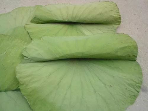 荷叶是荷花的叶片,以叶大、整洁、色绿者为佳。在南方各地,诸如广东、湖南、福建、江苏、浙江等地皆有出产,当满池荷花盛开时,也就代表着荷叶可以正式采摘使用。而采摘下来的荷叶,往往会经过晒干再用于烹饪中,能够让其它食材取其清香,达到增香解腻的效果。