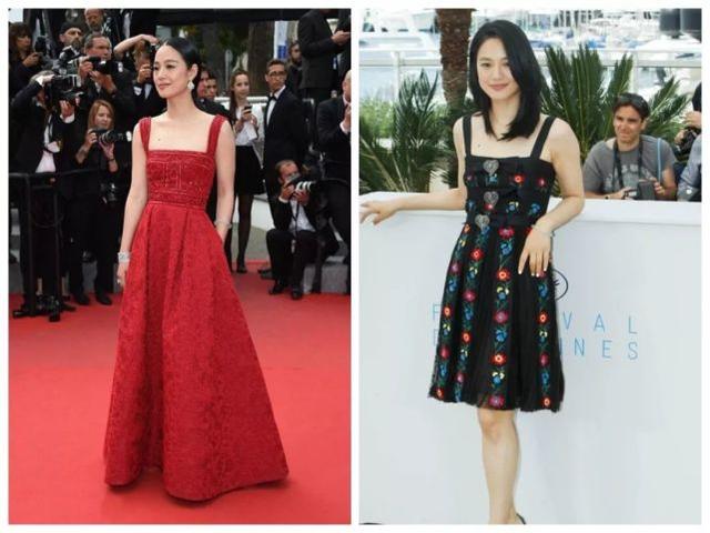 因为太低调,周韵极少出席活动,但翻翻周韵为数不多的红毯照,小8发现她真的很爱穿平领口、粗吊带组合成的方领礼服裙。2015年的戛纳电影节,两套造型都是大方领,看起来简单又大方。