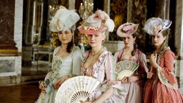 到了十八世纪,当时的时尚风向标玛丽皇后特别爱穿方领,导致法国宫廷几乎成了方领的天下。《绝代艳后》里就完美地还原了当时贵妇们对方领的喜爱,人手一件,搭配繁复的荷叶边非常华丽。