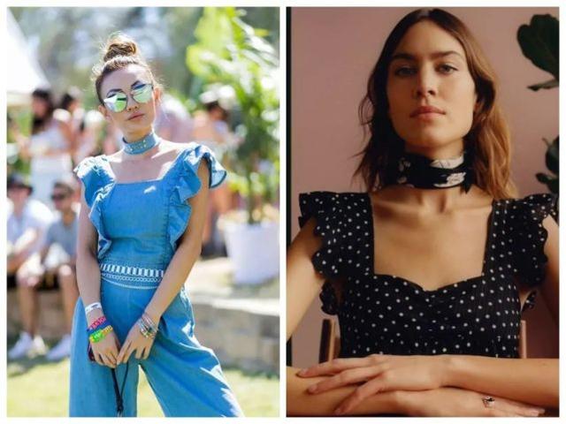 最后,方领因为领口比较大,容易显得胸口空荡荡的,可以在胸口搭配一些饰品,像Leandra和Aimee Song一样戴条项链就很有重点~