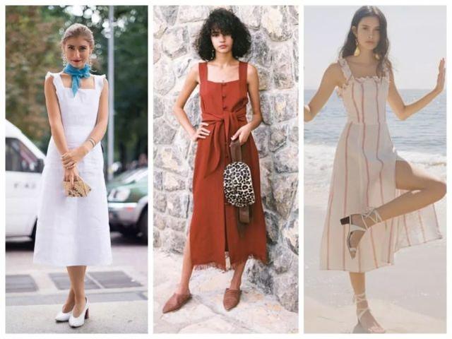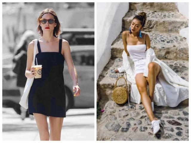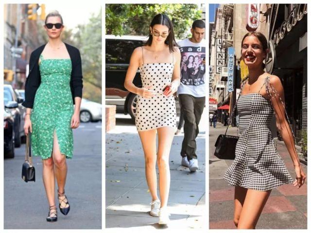 无袖方领就是吊带衫和吊带裙。之前Miss 烧饼其实有写过这类单品的挑选方法。
