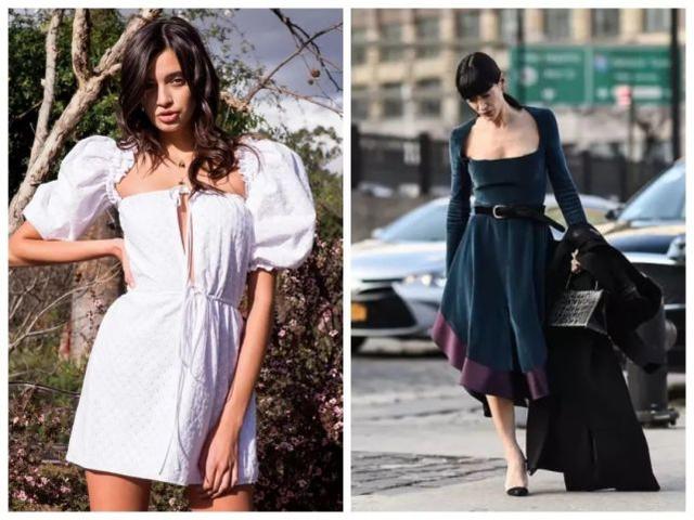左边适合宽肩,右边适合窄肩另外,泡泡袖作为经典宫廷元素,经常会和方领做在一起。如果你属于窄肩或溜肩星人,刚好可以修饰肩膀线条。