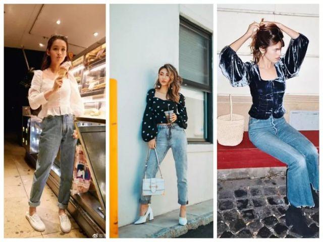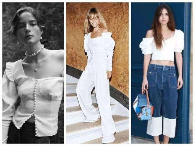长袖方领衬衫最复古、端庄,搭配一条牛仔裤就很有韵味。李沁就用牛仔裤、小白鞋搭配宫廷风方领上衣,看起来很甜美。想要更复古还能选波点或者丝绒材质,标准的effortless chic~