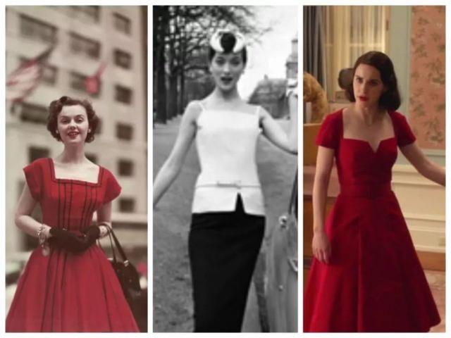 方领在推崇优雅的40、50年代的街拍里也随处可见,在高度还原了50年代时尚的《了不起的麦瑟尔夫人》里,麦瑟尔夫人也有穿方领。