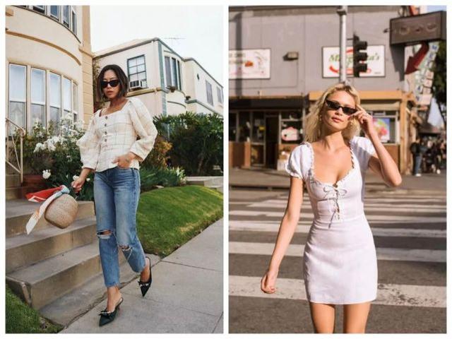 和无袖的方领比,有袖的方领更复古也更优雅,还更遮肉,对粗胳膊更友好。多了袖子不仅能在设计上变换出各种不同的花样。不管短袖还是长袖方领,挑选方法都是一样的。