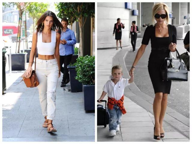像Emily Ratajkowski穿的这种宽肩带窄方领很挑人,宽肩、窄肩都很难穿好看。但对虎背熊腰的人来说,它刚好遮住了最宽厚的部位,反而合适。贝嫂穿的这种有袖的也是,而且遮住拜拜袖更显瘦。