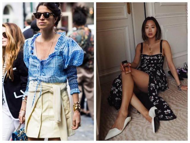 因为方领本身就自带复古气息,搭配复古的奶奶鞋、穆勒鞋看起来非常优雅,画报感十足。搭配绑带鞋又很度假。