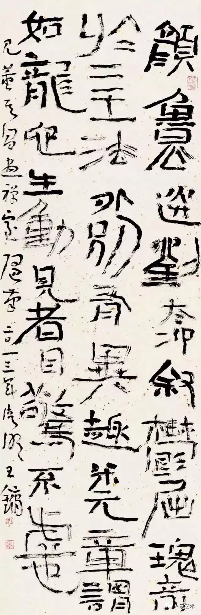纵观中国书法史,「丑书」经典之作很多,比如明代张弼、祝允明、陈淳、徐渭等大幅狂草之作,还有一些北魏书法经典,按照传统帖学典雅、中和的标准,这些草书非「正统美」,它们是游离于中华传统审美习惯之外的「丑」,但观看这些草书,却能感受到一种真正的美。比如奇崛、大气、凌厉、雄肆等等,这与当代丑书不可同日而语。另外如何看「审丑」,也是一个深刻的学术问题。西方现代性开山鼻祖波得莱尔《恶之花》诗歌作品,描写大量很丑的审美意想,比如妓女尸体、蛆虫、苍蝇等等,但能从「丑」提炼某种现代「美感」,这样的丑正如不少明代草书大家,是「假丑」而真美;西方诗人、文学家艾略特《荒原》、卡夫卡的《甲壳虫》、《城堡》等等经典巨著也是从现代生活的荒诞、异化中提炼现代性审美之思考等等。「丑学」的根本归趣还是审美,当代丑书遭受广泛批判,根本原因还是未能升华到对「审丑」的根本认识,反而将中国书法推向发展危机的境遇。