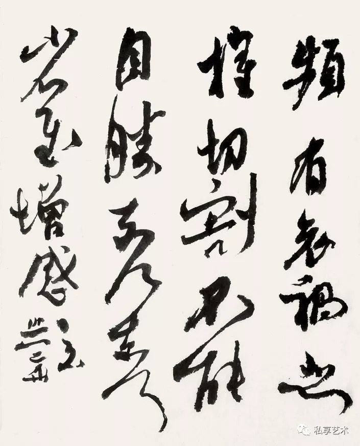由此可知,古今书法必须善于贯通。如果我们进一步深入中国书法史,「审丑」和「审美」之间的类似问题一样存在,比如赵孟頫书法的「流美」「软滑」等一些过于唯美的倾向,傅山就做出一些批评,「宁拙勿巧,宁丑勿媚,宁支离勿轻滑,宁真率勿安排」成为当代丑书的一个重要理论来源;张弼、徐渭、祝允明、詹景凤等一些明代狂草遭受的很多批评,无非还是「狂态毕露」的「丑」为文人雅士所诟病;朱熹也批评过宋代书法的「狂怪怒张」等。但张弼、徐渭、宋四家等等大师之作终究还是得到历史的承认,这是值得当代丑书深思之处。