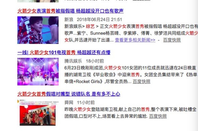 同样火箭少女101也有相同的困境,少女们成团当天就对外宣布了第二天将亮相湖南卫视《毕业歌会》,媒体报道节目表演状况百出,而这场演出或许是不能拒绝的,成团之后是女孩们的高光时刻,需要趁热打铁。因为谁也不知道这股热度有多久。